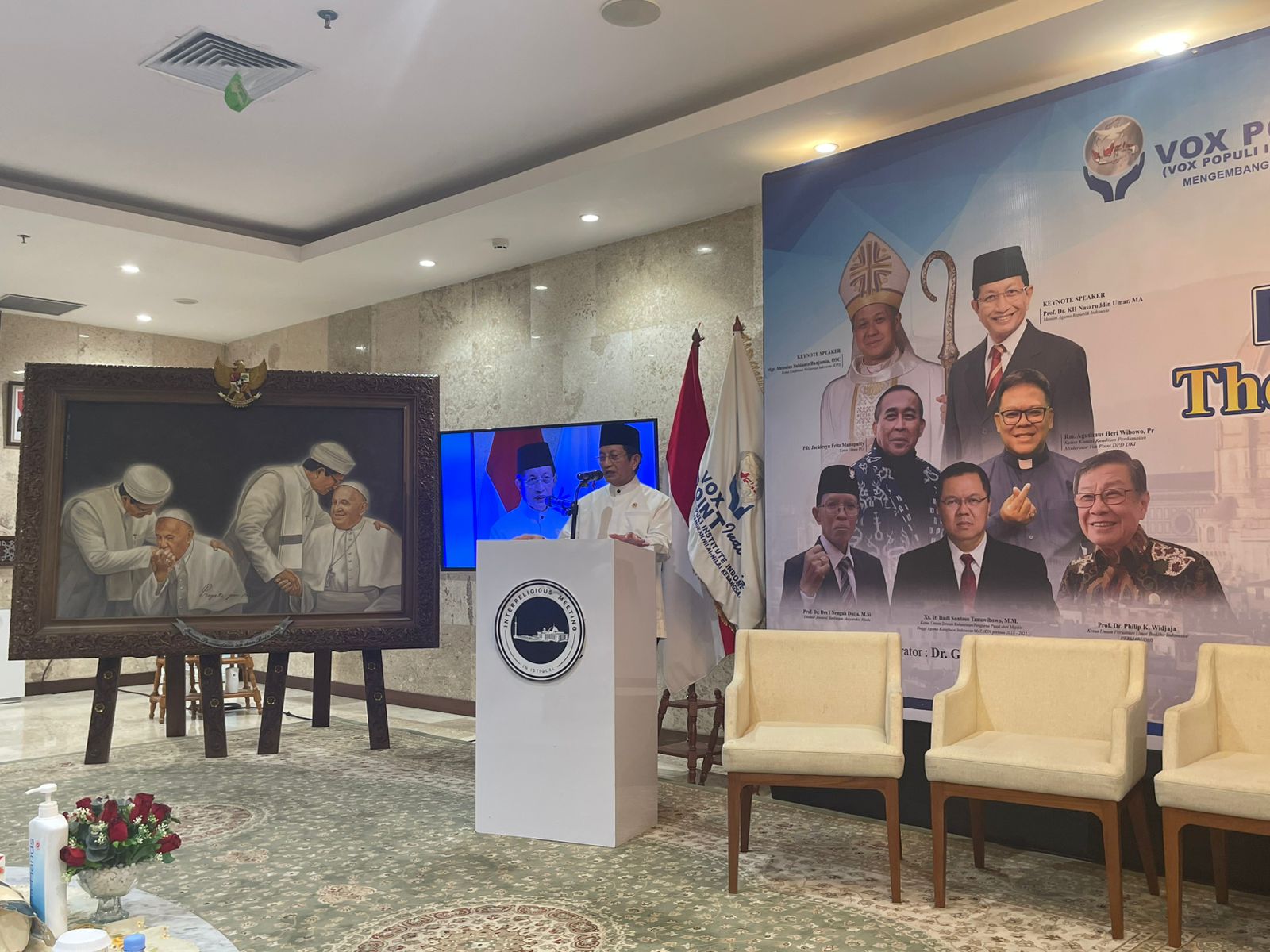 Vox Point Indonesia menggelar Dialog Antaragama bertema “The Servant Leadership of Pope Francis” di Masjid Istiqlal, Rabu (28/5). Menteri Agama Republik Indonesia, Prof. Dr. KH Nasaruddin Umar, MA, hadir mendoakan forum dialog antar agama ini sekaligus menjadi keynot speaker.