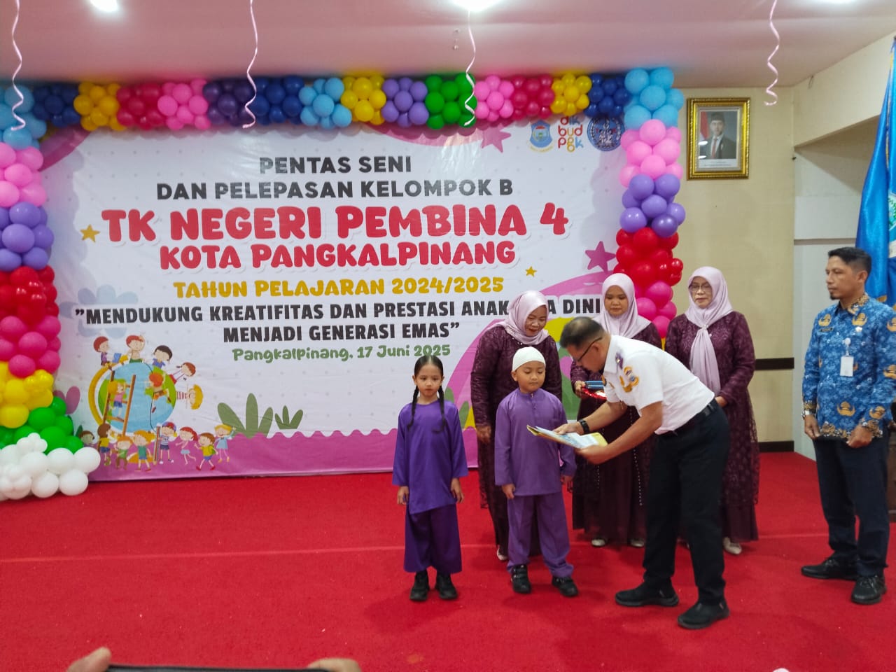 PANGKALPINANG – Suasana haru dan meriah menyelimuti Gedung Balai Besar Betason saat TK Negeri Pembina 4 Pangkalpinang menggelar Pentas Seni dan Pelepasan Siswa, Selasa (17/6/2025).