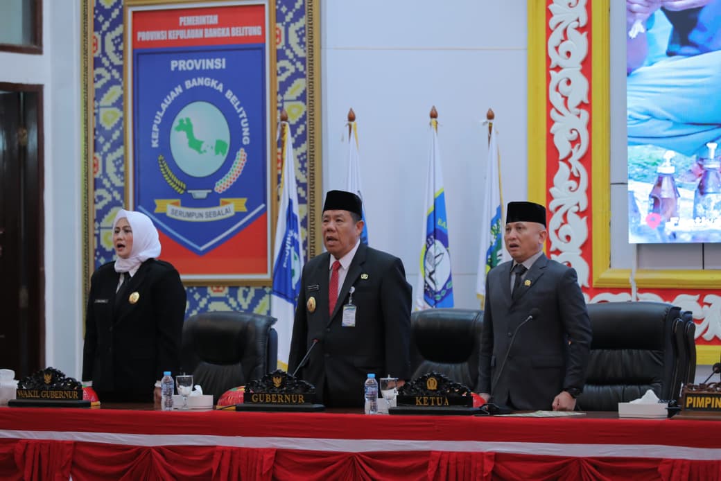 Rapat dipimpin Wakil Ketua DPRD Babel H. Eddy Iskandar dan dihadiri Gubernur Hidayat Arsani, Wakil Gubernur Hellyana, jajaran Forkopimda, pejabat vertikal, tokoh masyarakat, serta tamu undangan lainnya.