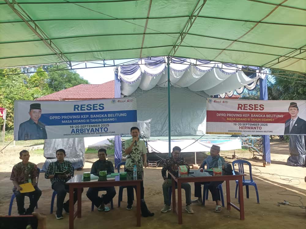 SIMPANG TERITIP – Anggota DPRD Provinsi Kepulauan Bangka Belitung, Arbiyanto dari Partai Demokrat bersama Herwanto melaksanakan kegiatan reses di Desa Simpang Tiga, Kecamatan Simpang Teritip, Bangka Barat, Kamis (18/9).