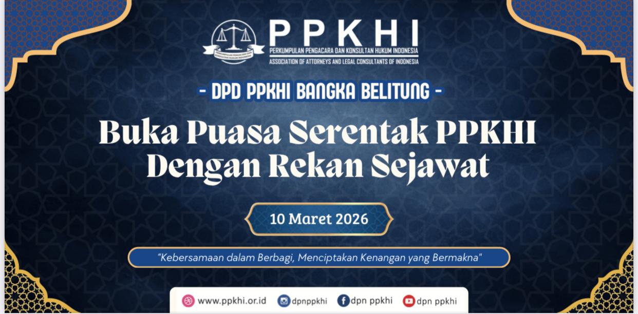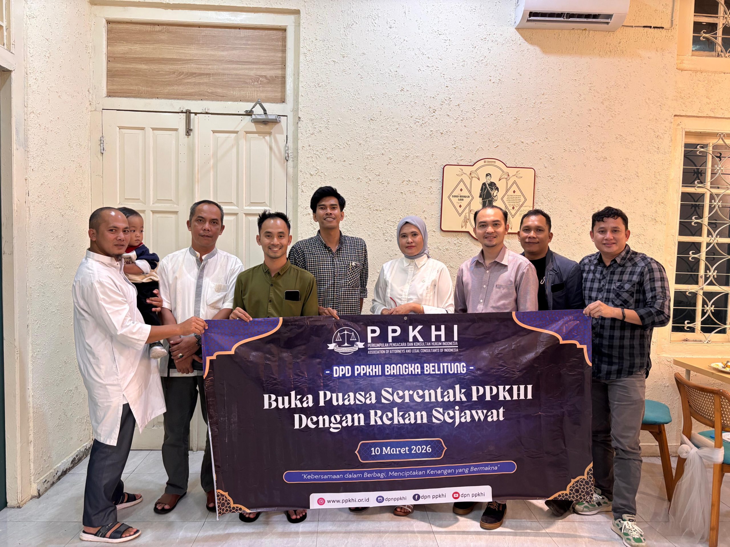 Bangka Belitung — Dewan Pimpinan Nasional Perkumpulan Pengacara dan Konsultan Hukum Indonesia (DPN PPKHI) menggelar buka puasa bersama dan penyaluran uang santunan bagi anak yatim-piatu anggota PPKH di seluruh Indonesia dan dilakukan bersama serentak di Wilayah masing-masing keberadaan Dewan Pimpinan Daerah Perkumpulan Pengacara dan Konsultan Hukum Indonesia (DPD PPKHI) di gelar, sabtu (10/03/26).